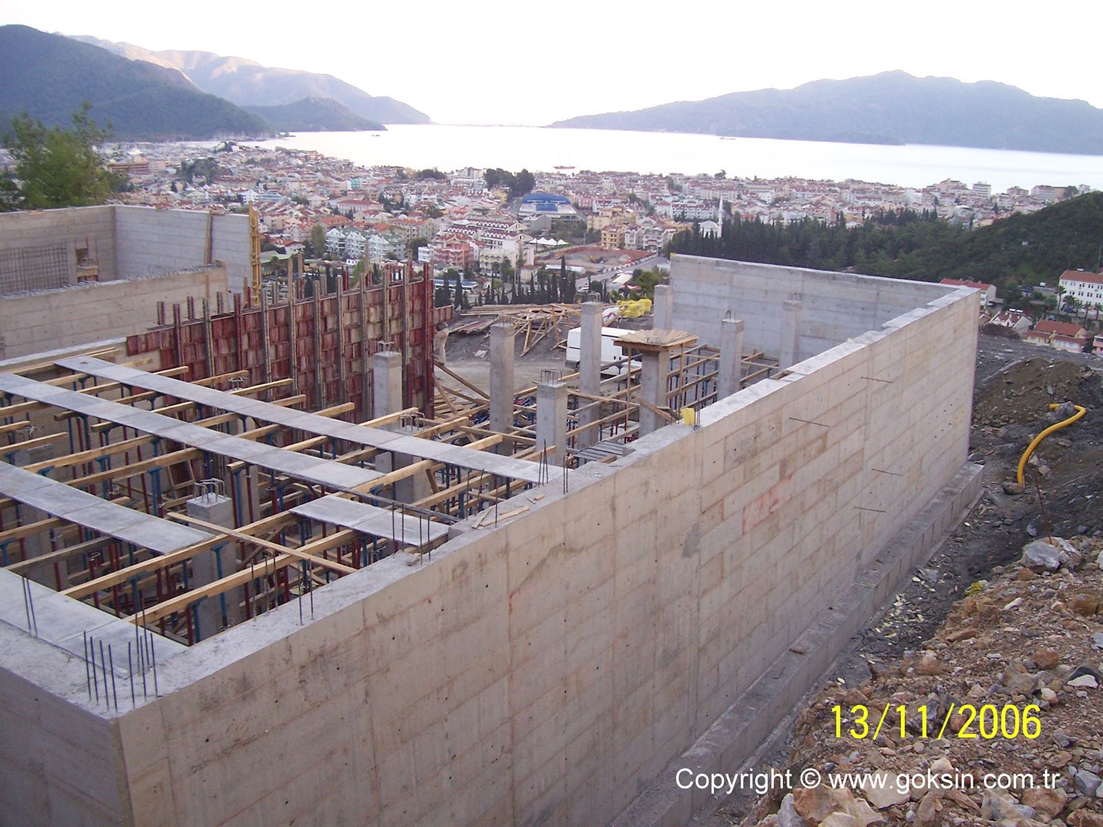 Within the scope of the project, "5000 m3 Water reservoir Construction", a contract with the Marmaris Environmental Protection Infrastructure Facilities construction and Management Union (Mariç-Belbir) signed in 2006. A concrete water reservoir of 5000 m3 has been constructed according to the Provincial Bank drinking Water Reservoirs type project. The facility has major importance in terms of supplying the drinking water demand of the district of Marmaris. The facility has been completed according to the science and craft rules in a very short time.