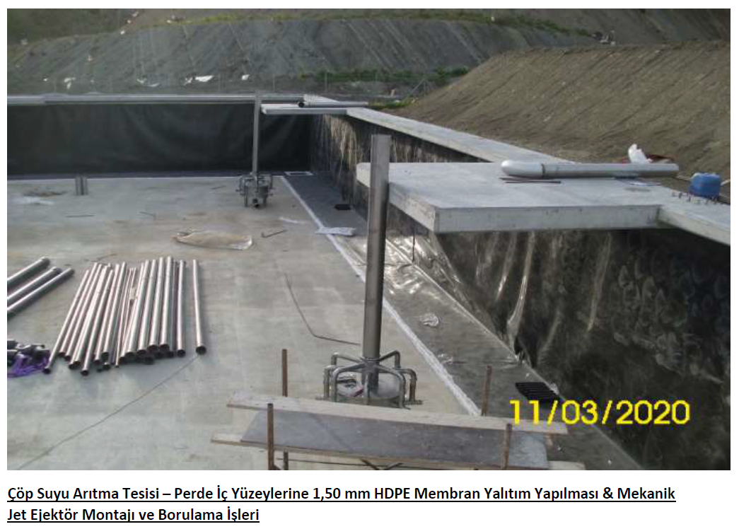 Кроме того, завершена сборка системы рециркуляции установки для мойки колес и соответствующих очистных сооружений, работы по прокладке габионных стен и грунта, выполненные в рамках работ по обеспечению стабильности на юге, строительство испарительного бассейна для выщелачивания, изготовление системы отвода дождевой воды вокруг административных зданий, механические монтажные работы, связанные с установкой для сжигания газа. Производства, связанные с другими предметами в рамках проекта, продолжаются.